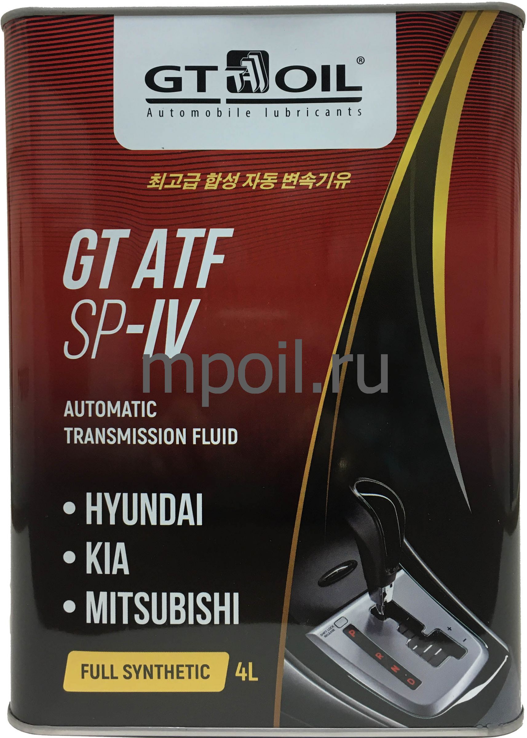 GT ATF SP-IV предназначена для применения в 6-ти, 5-ти и 4-х ступенчатых автоматических коробок передач легковых и грузовых автомобилей, гидроусилителей рулевого управления, редукторов Hyundai / Kia, где применяются жидкости типа ATF SP-IV (A6LF1/2/3, A6GF1, A6MF1/2).