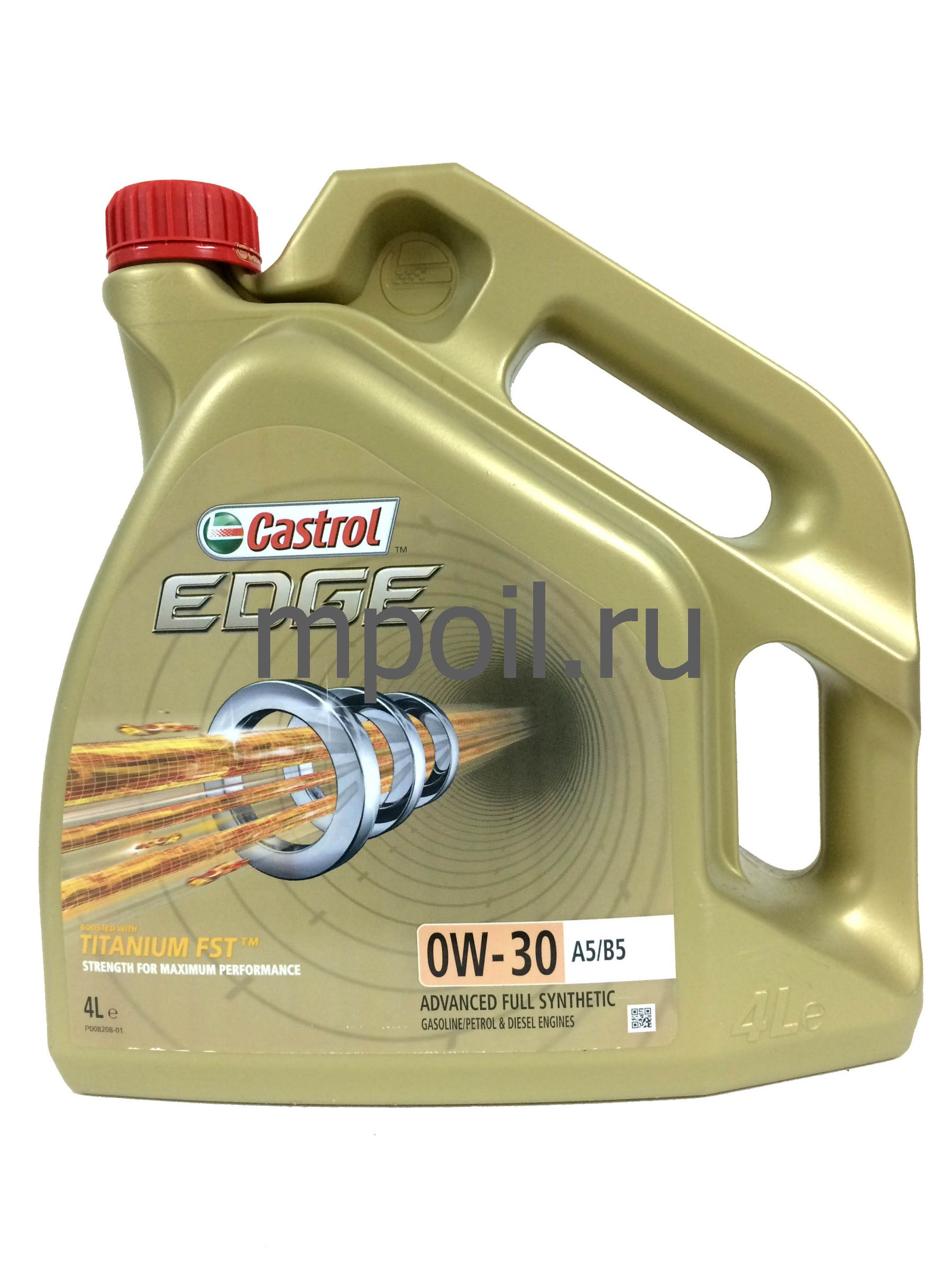 Castrol EDGE 0W-30 A5/B5 - Энергосберегающее полностью синтетическое моторное масло, произведенное с использованием новейшей технологии TITANIUM FST™, придающей масляной пленке дополнительную силу и прочность, благодаря соединениям титана. На протяжении всего межсервисного интервала обеспечиваются высокая экономия топлива и эффективная защита от износа. Для автомобилей требующих маловязких энергосберегающих масел спецификации ACEA A5/B5. Подходит для большинства современных двигателей легковых автомобилей Вольво, Форд, Лендровер и Ягуар.