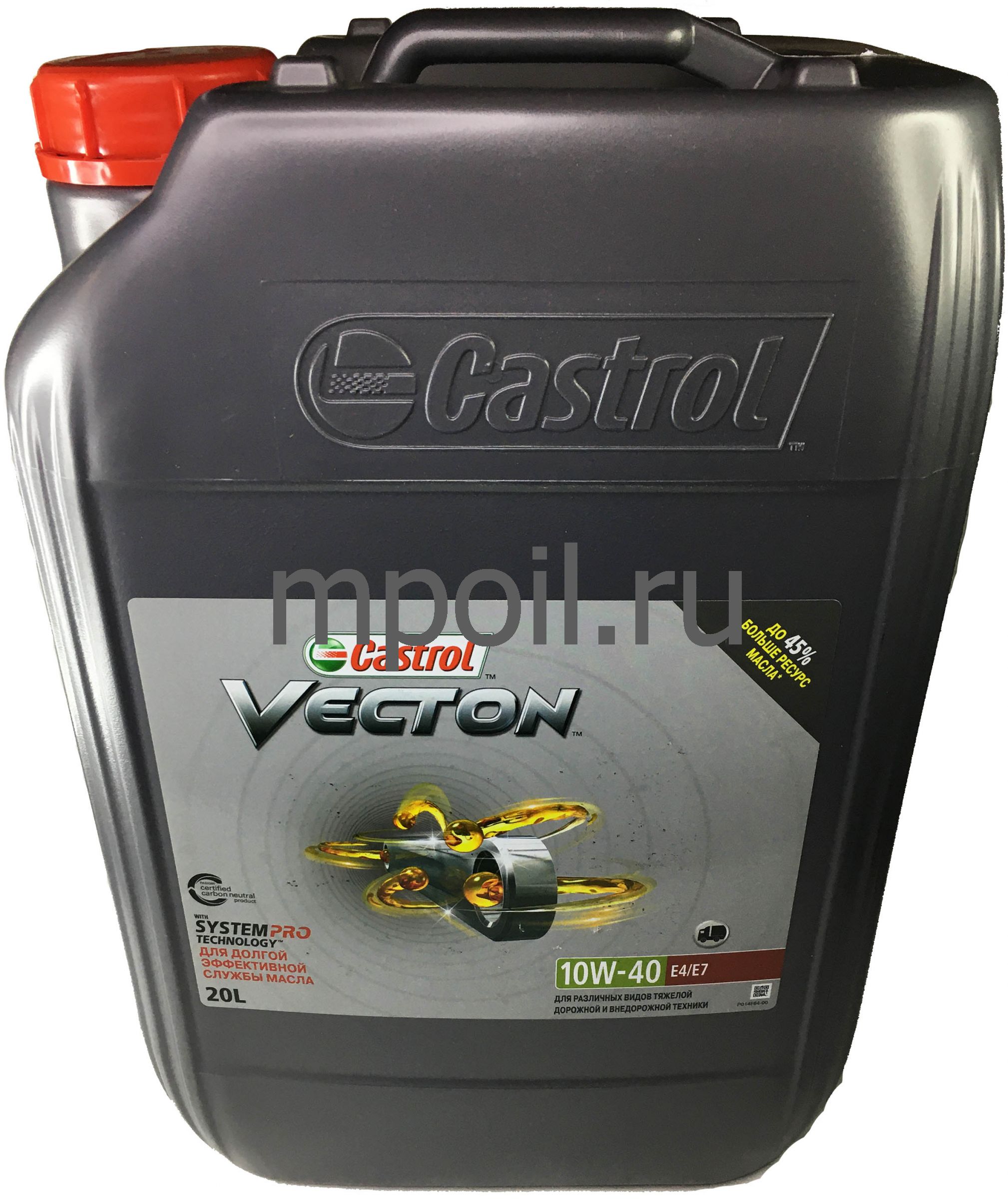 Моторное масло с синтетическими компонентами для дизельных двигателей тяжелой техники, созданное с использованием передовых технологий производства смазочных материалов, специально разработанное для обеспечения более длительного эффективного срока службы масла. Castrol VECTON с технологией System Pro™ обеспечивает улучшение эксплуатационных характеристик масла вплоть до 45%*, противостоит снижению эффективности рабочих свойств масла, а также адаптируется к более высоким рабочим температурам для увеличения эффективного срока службы масла, что дает вам уверенность при использовании максимального интервала замены. Все масла Castrol VECTON сертифицированы как нейтральные по отношению к СО2 в соответствии с международным стандартом PAS2060. Новейшие технологии, используемые в современных двигателях грузовых автомобилей, увеличивают их крутящий момент до 30%, однако при этом возрастают рабочие температуры и давление в двигателе. Это увеличивает нагрузку на моторное масло, ускоряя его разрушение и снижая ресурс.
