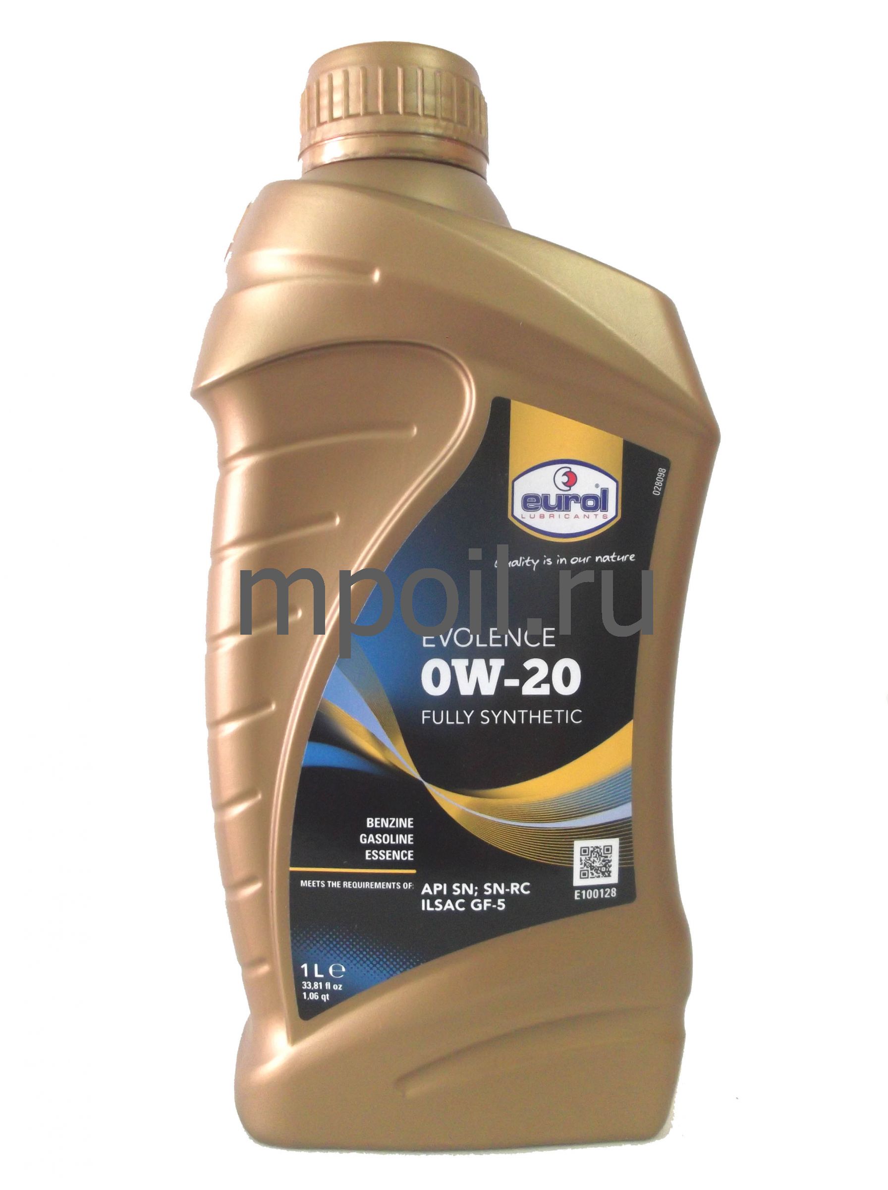Eurol Evolence 0W-20 полностью синтетическое моторнное масло для бензиновых двигателей легковых автомобилей. Это масло может быть использовано в машинах, оснащенных каталитическими нейтрализаторами отработавших газов, двигателями с турбонаддувом и системами прямого впрыска, где требуется применение масел типа API SN/SN-RC (а также SJ, SL и SM) или ILSAC GF-5 (а также GF-2,-3 и -4).