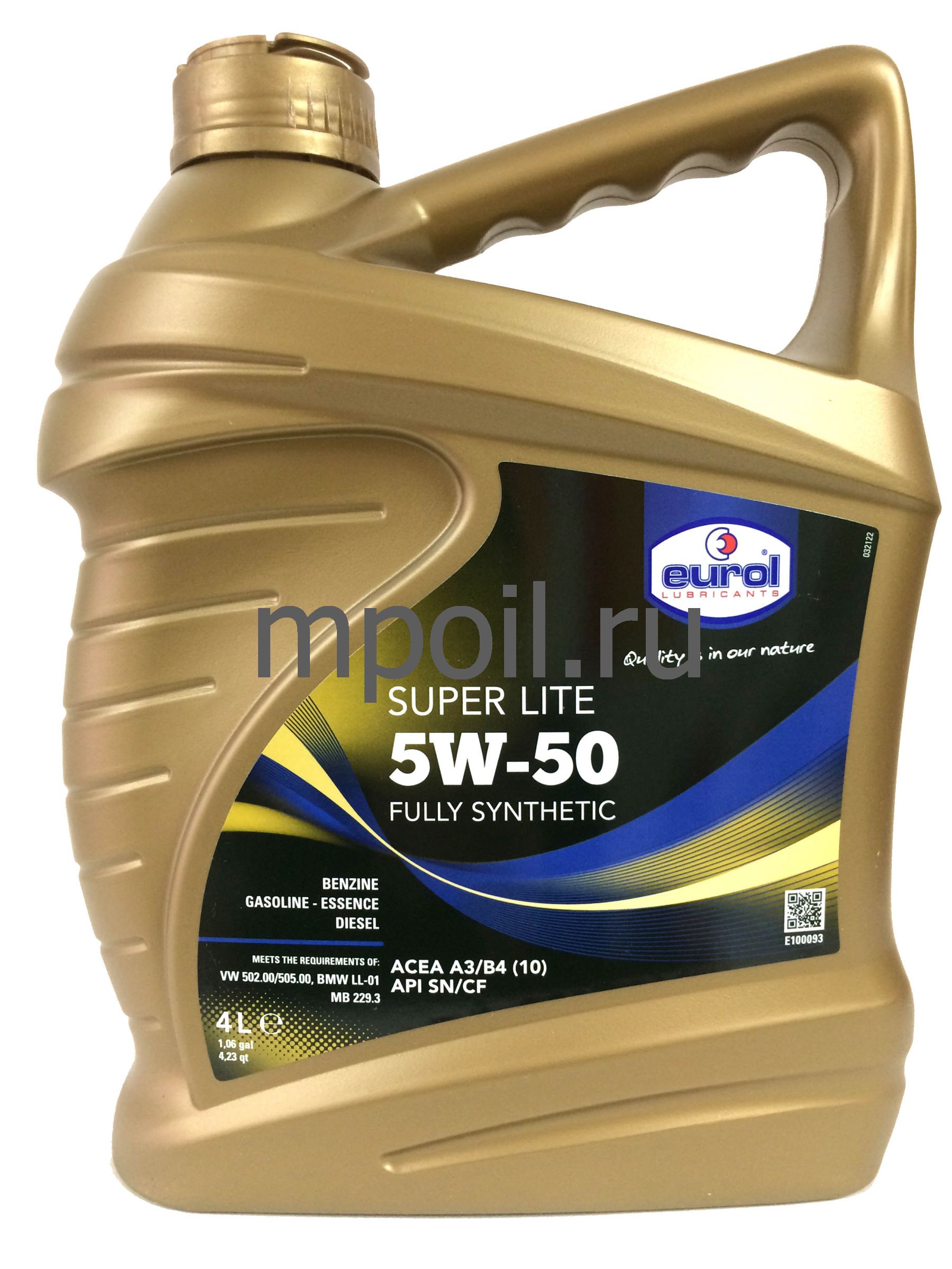 Технические характеристики Масло EUROL Super Lite 5W-50 синт. 4л