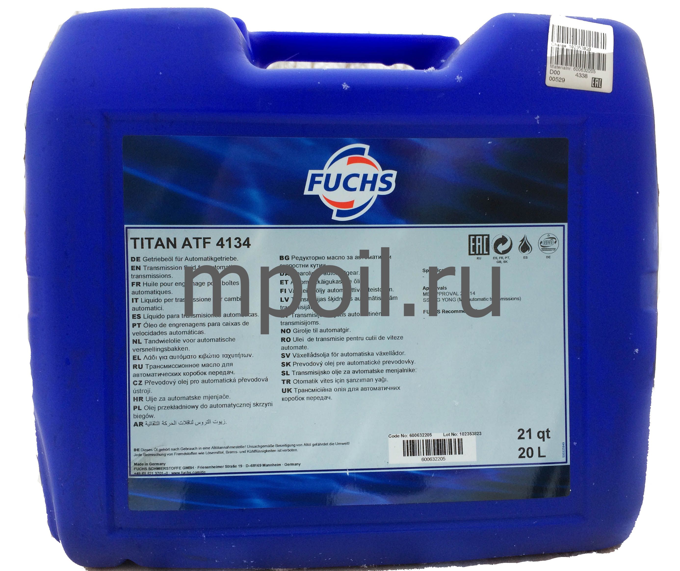 Технические характеристики Масло Fuchs Titan ATF 4134 MB 236.14 20л