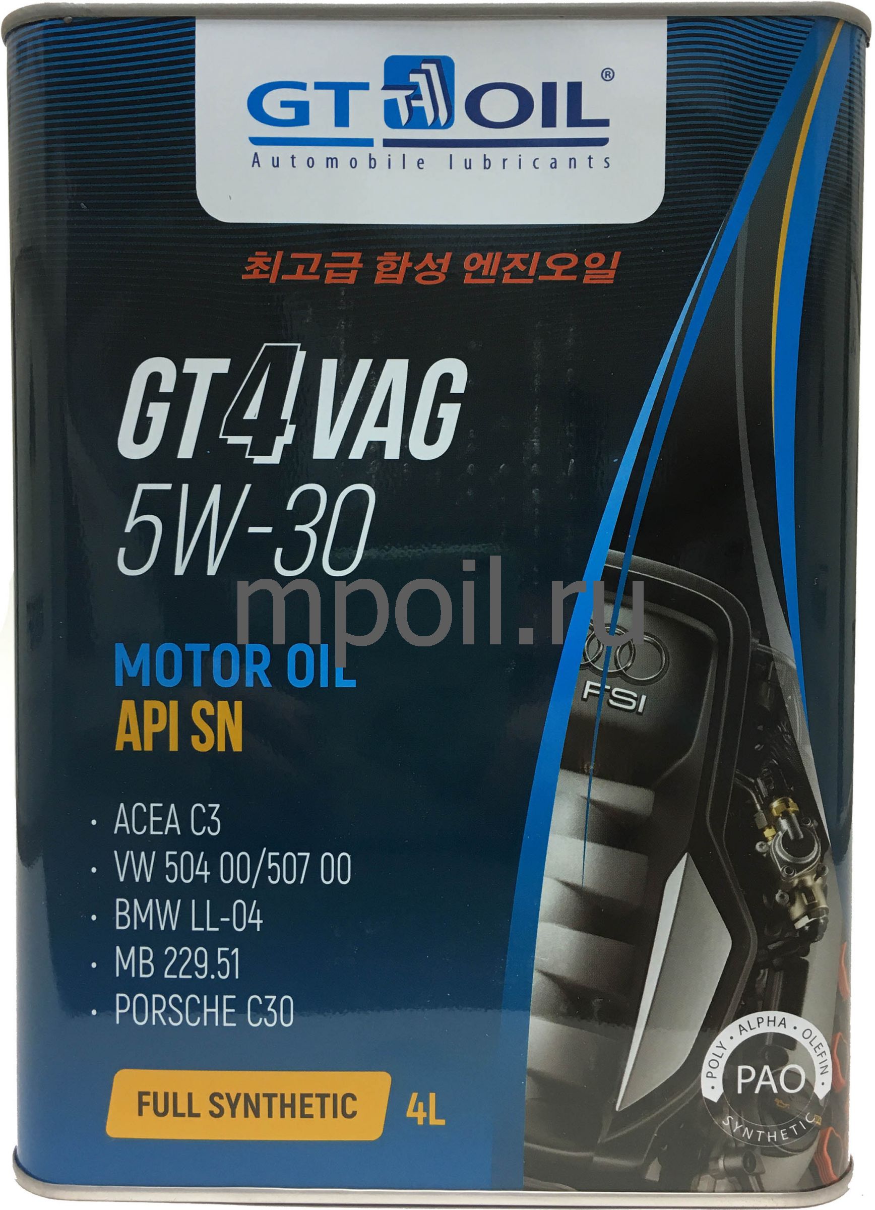 Технические характеристики Масло GT 4 VAG 5W30 API SN 4 л 504/507
