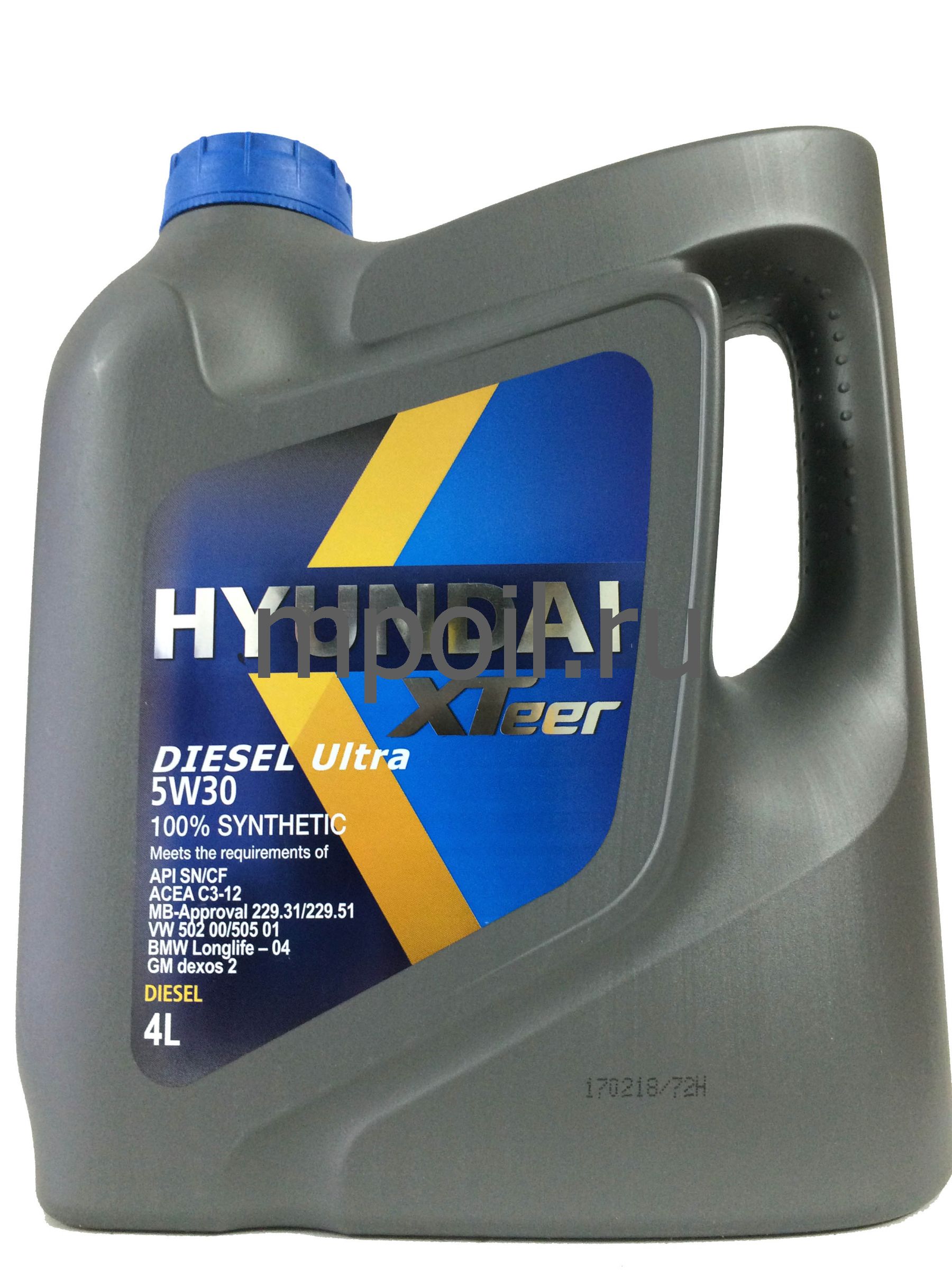 Hyundai XTeer Diesel Ultra 5W30 передовое синтетическое моторное масло для дизель-