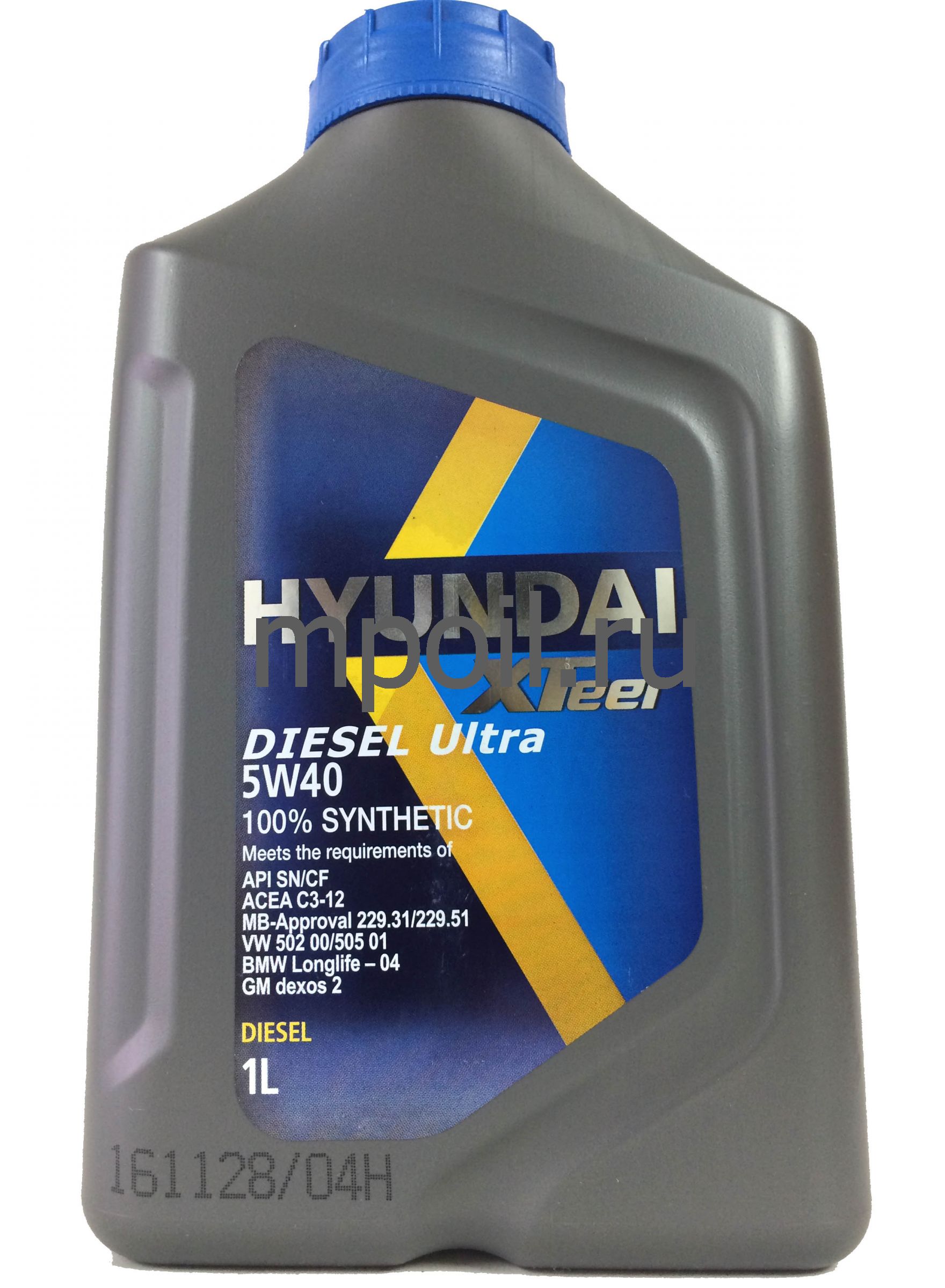 Hyundai XTeer Diesel Ultra 5W40 передовое синтетическое моторное масло для дизель-