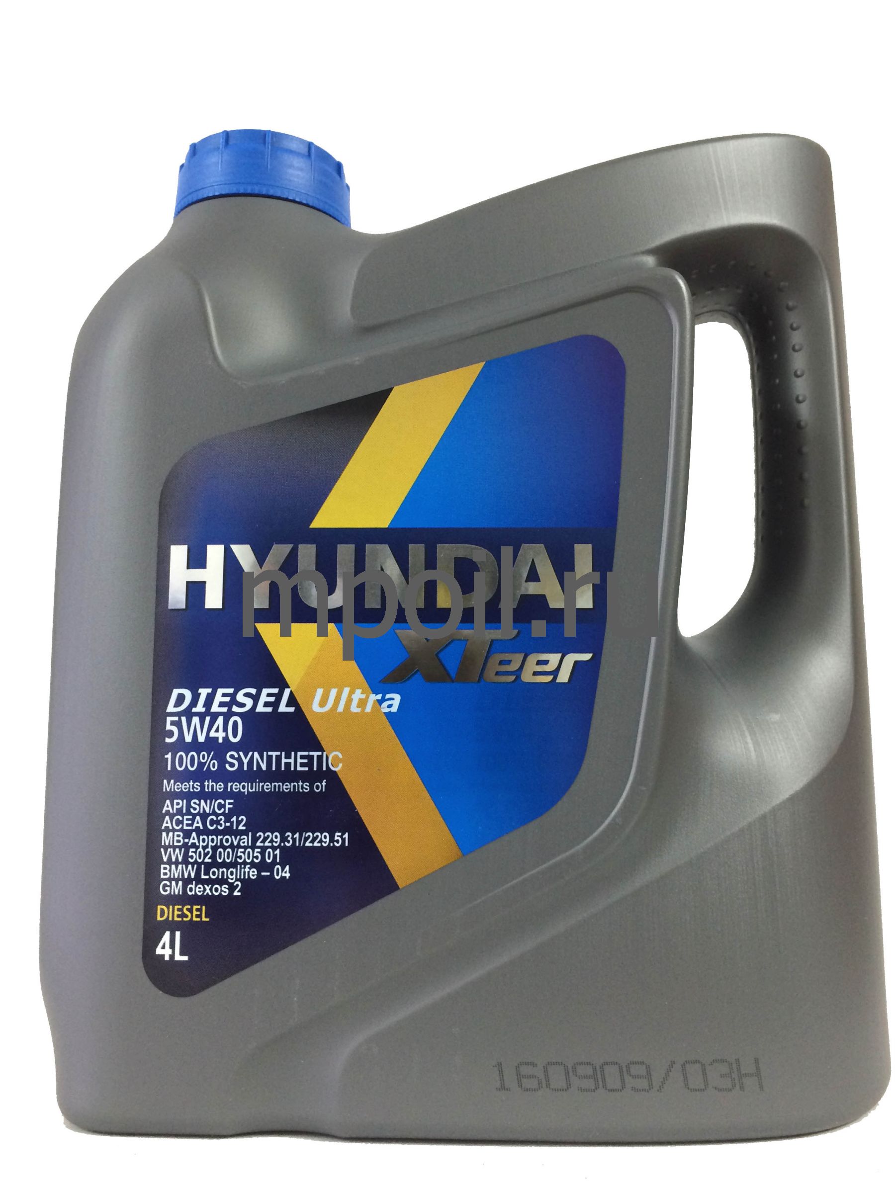 Hyundai XTeer Diesel Ultra 5W40 передовое синтетическое моторное масло для дизель-