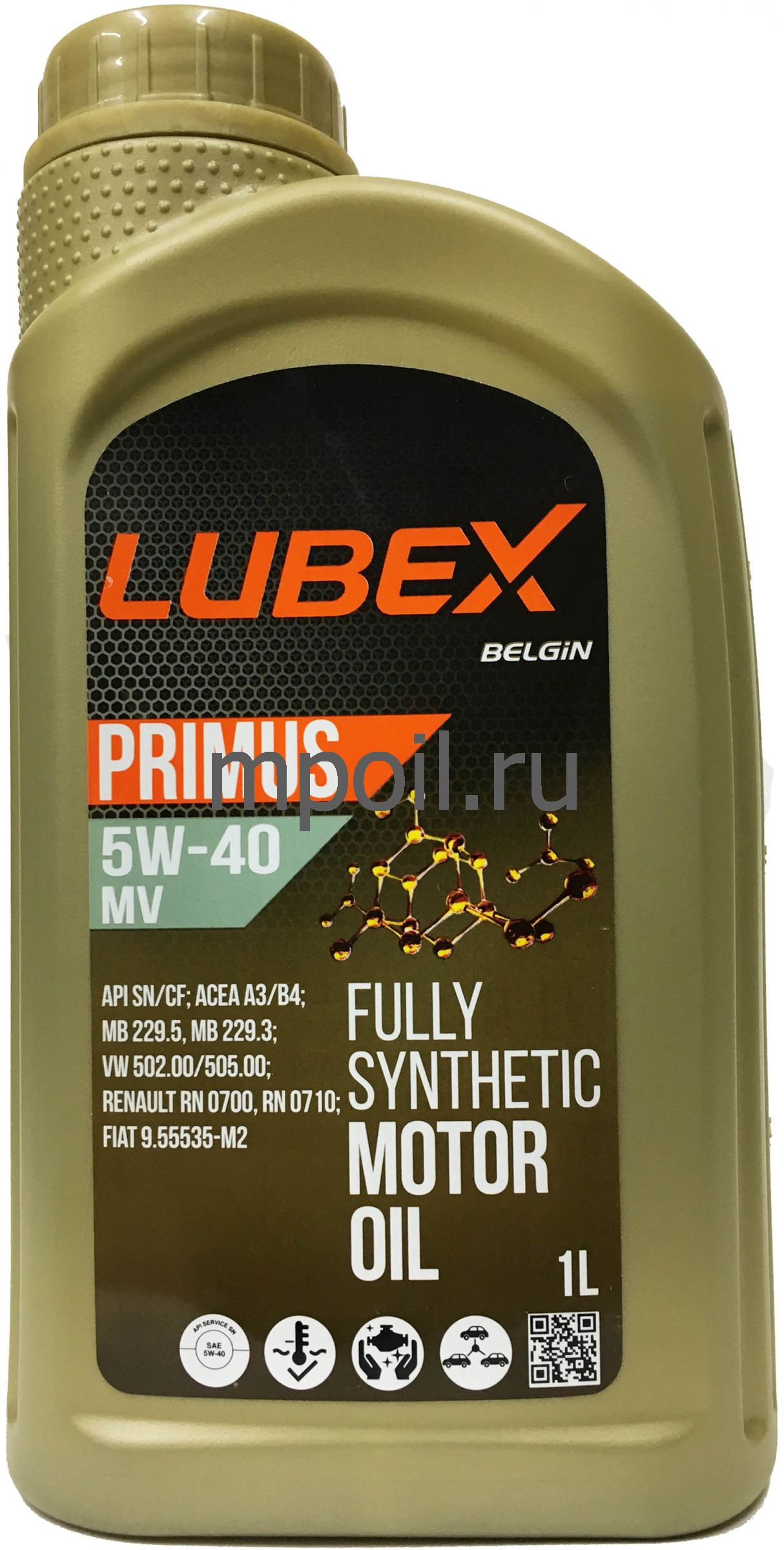 Технические характеристики Масло LUBEX Primus MV 5W-40 CF/SN A3/B4 (1л)