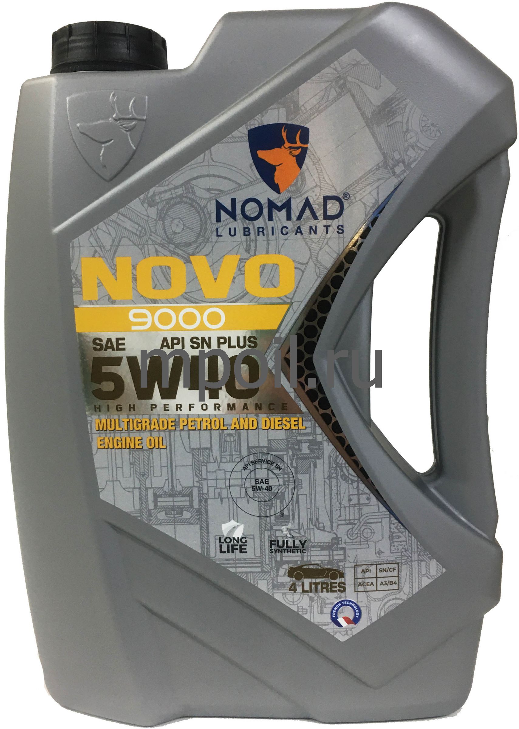 Nomad Novo 9000 5W40 — полностью синтетическое моторное масло для бензиновых двигателей легковых автомобилей, с бескомпромисной защитой за счет класической вязкости 5W40, которая обеспечит стабильность маслянной пленки в самые сложные моменты работы двигателя. Может использоваться в самых сложных условиях эксплуатации в городских пробках, при высоких внешних температурах. Масло подходит для всех типов вождения. Подходит для бензиновых, дизельных, а также двигателей на газу. Снижает трение, адаптировано для длительных интервалов замены масла.