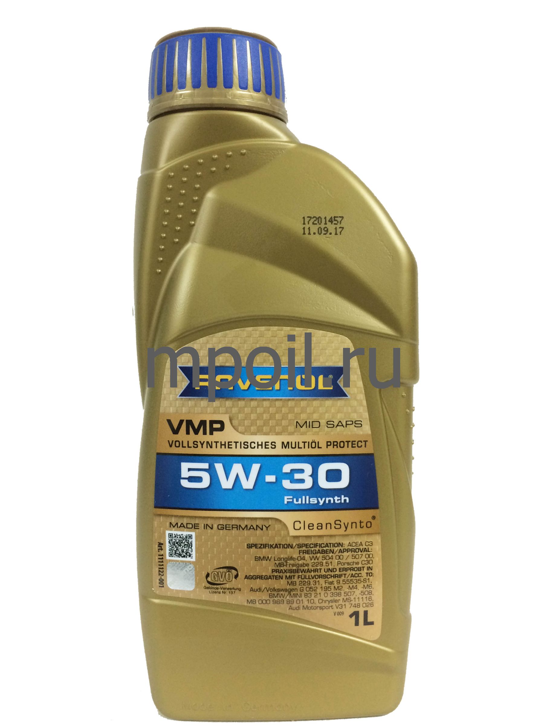 RAVENOL VMP SAE 5W-30 – полностью синтетическое легкотекучее среднезольное (MID SAPS) моторное масло, изготовленное с применением технологии CleanSynto® для легковых бензиновых и дизельных моторов с и без турбонадува и прямым впрыском топлива. Увеличенные интервалы заманы масла. Уменьшение выбросов в атмосферу за счет низкозольной формулы. Минимальный износ двигателя. Продлевает срок службы DPF фильтров и трех компонентных катализаторов TCW. HTHS > 3,5 mPa.s. Топливная экономичность в двигателях класса EURO 4, EURO 5.