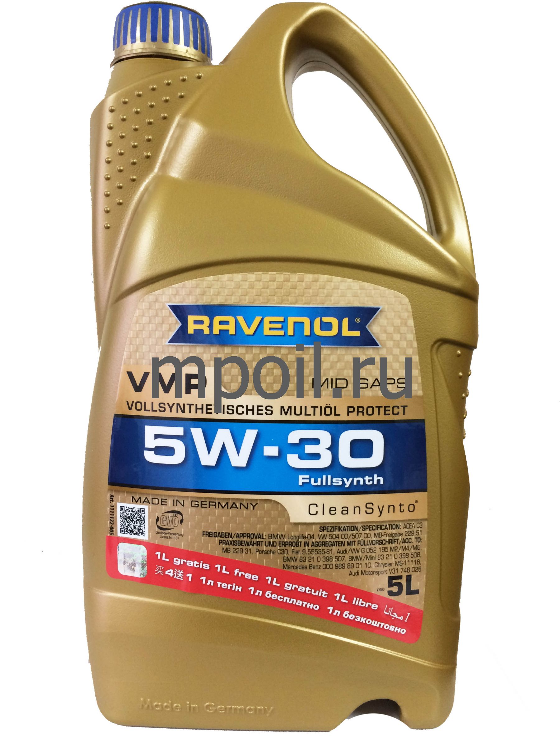 RAVENOL VMP SAE 5W-30 – полностью синтетическое легкотекучее среднезольное (MID SAPS) моторное масло, изготовленное с применением технологии CleanSynto® для легковых бензиновых и дизельных моторов с и без турбонадува и прямым впрыском топлива. Увеличенные интервалы заманы масла. Уменьшение выбросов в атмосферу за счет низкозольной формулы. Минимальный износ двигателя. Продлевает срок службы DPF фильтров и трех компонентных катализаторов TCW. HTHS > 3,5 mPa.s. Топливная экономичность в двигателях класса EURO 4, EURO 5.