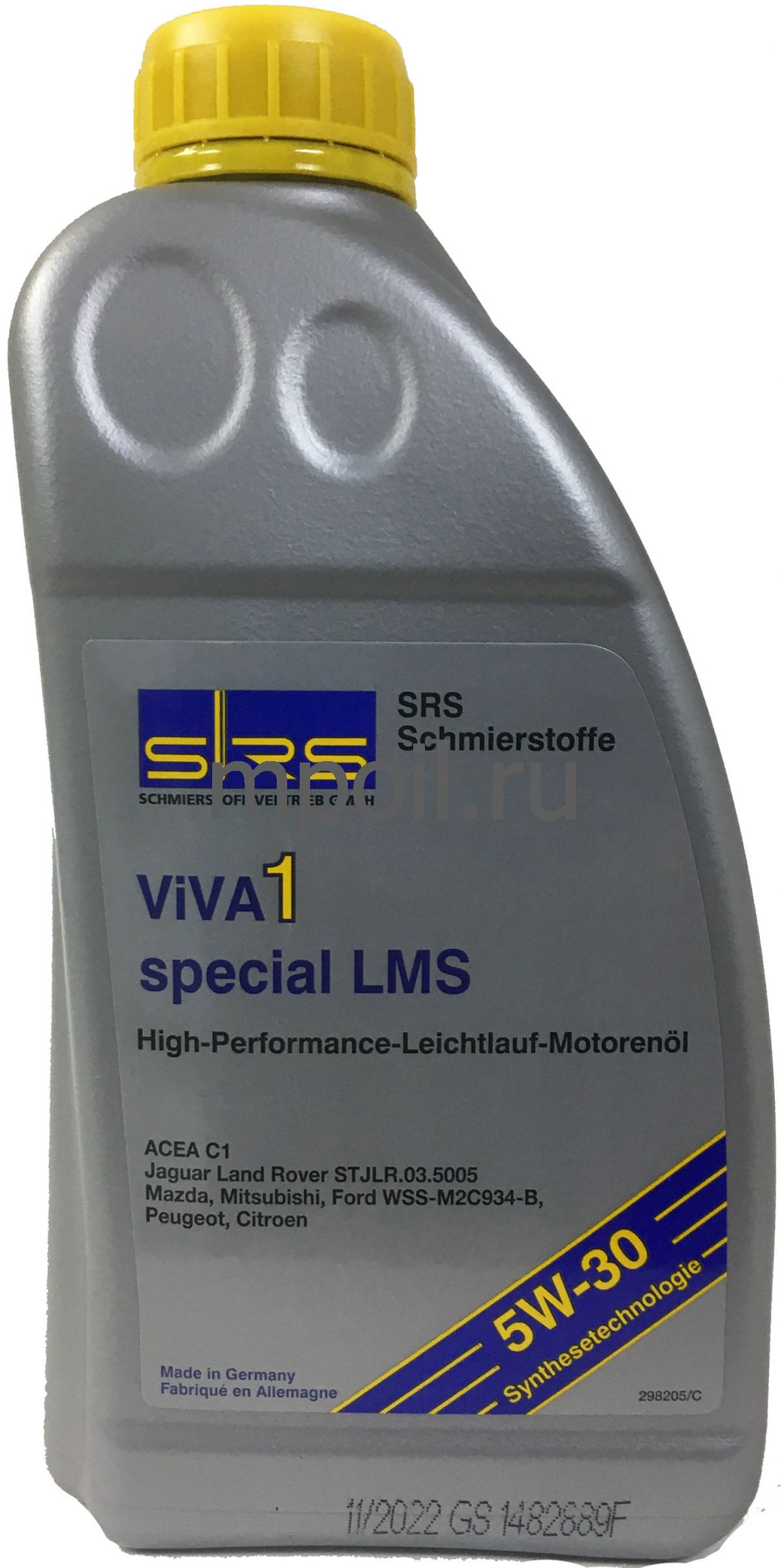 SRS ViVA 1 special LMS - синтетическое, высокопроизводительное моторное масло низкого трения вязкостью SAE 5W-30 сделанное по Low SAPS технологии (Низкий уровень Сульфатной зольности, Фосфора, Серы).