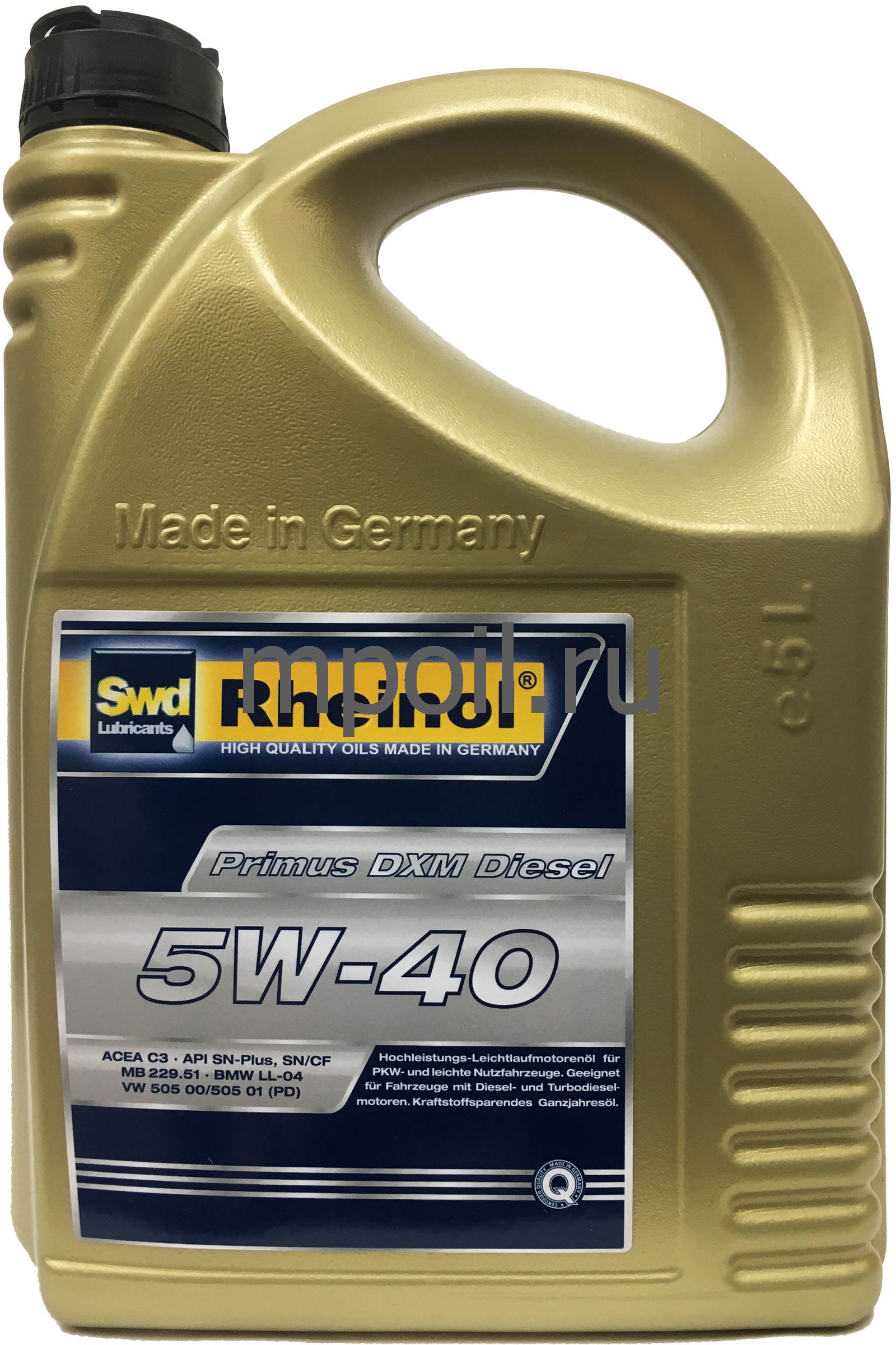 Swd Rheinol Primus DXM Diesel 5W-40 -высокопроизводительное моторное масло с низким уровнем сульфатной зольности, фосфора и серы, благодаря новой технологии присадок «Low SAP». Для двигателей с системой обработки выхлопных газов (катализатор, сажевый фильтр DPF) и без неё.