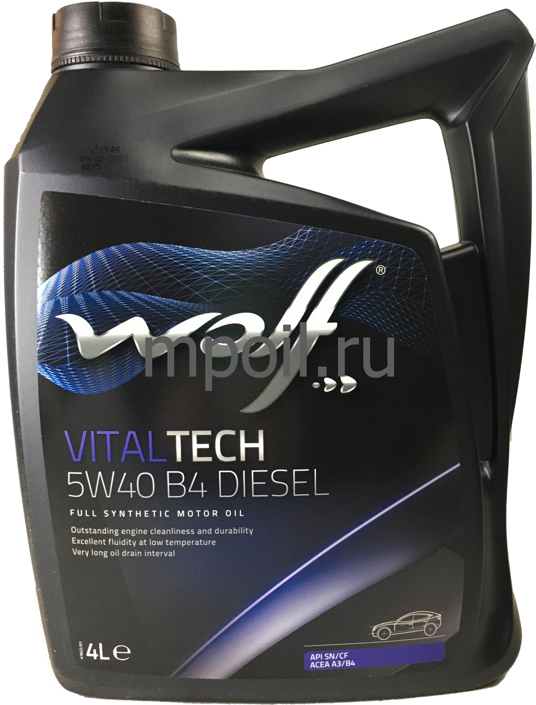 Технические характеристики Масло WOLF VITALTECH 5W40 B4 DIESEL 4L