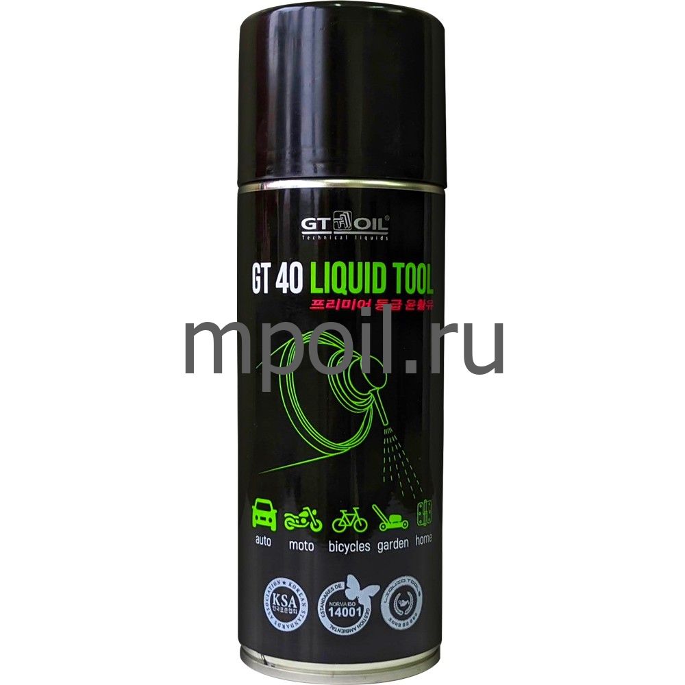 Универсальная смазка GT OIL GT40 LiquidTool, спрей, 520 мл 8809059410189 - многуфункциональный проникающий материал, который быстро разрыхляет ржавчину и возвращает подвижность резьбовым соединениям. Смазывает и очищает движущиеся части механизмов: шарниры, колеса, шкивы, ролики, цепи и шестерни. Облегчает отвинчивание приржавевших или замерзших металлических деталей, ослабляя сцепление ржавчины с металлом.