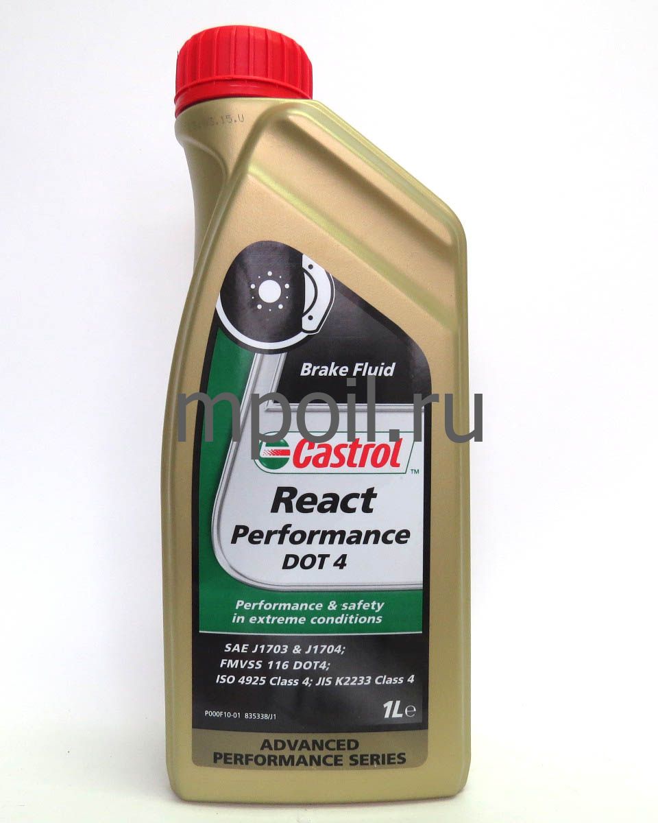 Тормозная жидкость Castrol React Performance DOT 4 специально разработана как альтернатива высокотемпературным свойствам жидкостей стандарта DOT 5.1. Castrol React Performance DOT 4 специально разработана для обеспечения стабильности необходимых характеристик при постоянном режиме "старт-стоп" в условиях города, быстрой езде и эксплуатации в горной местности, при которых тормозная система может сильно нагреваться.