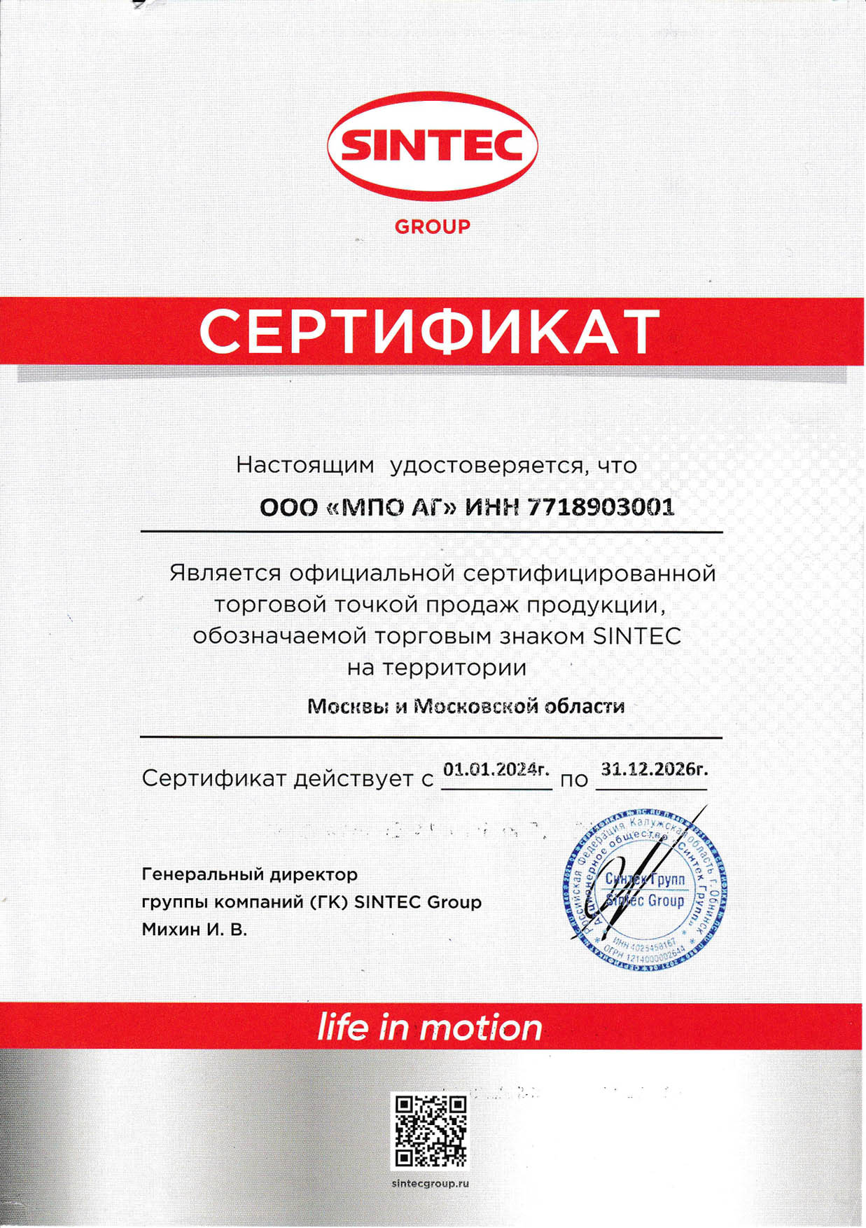 На этой странице наши сертификаты дистрибьютора, дилера, официального представителя бренда.